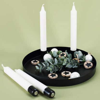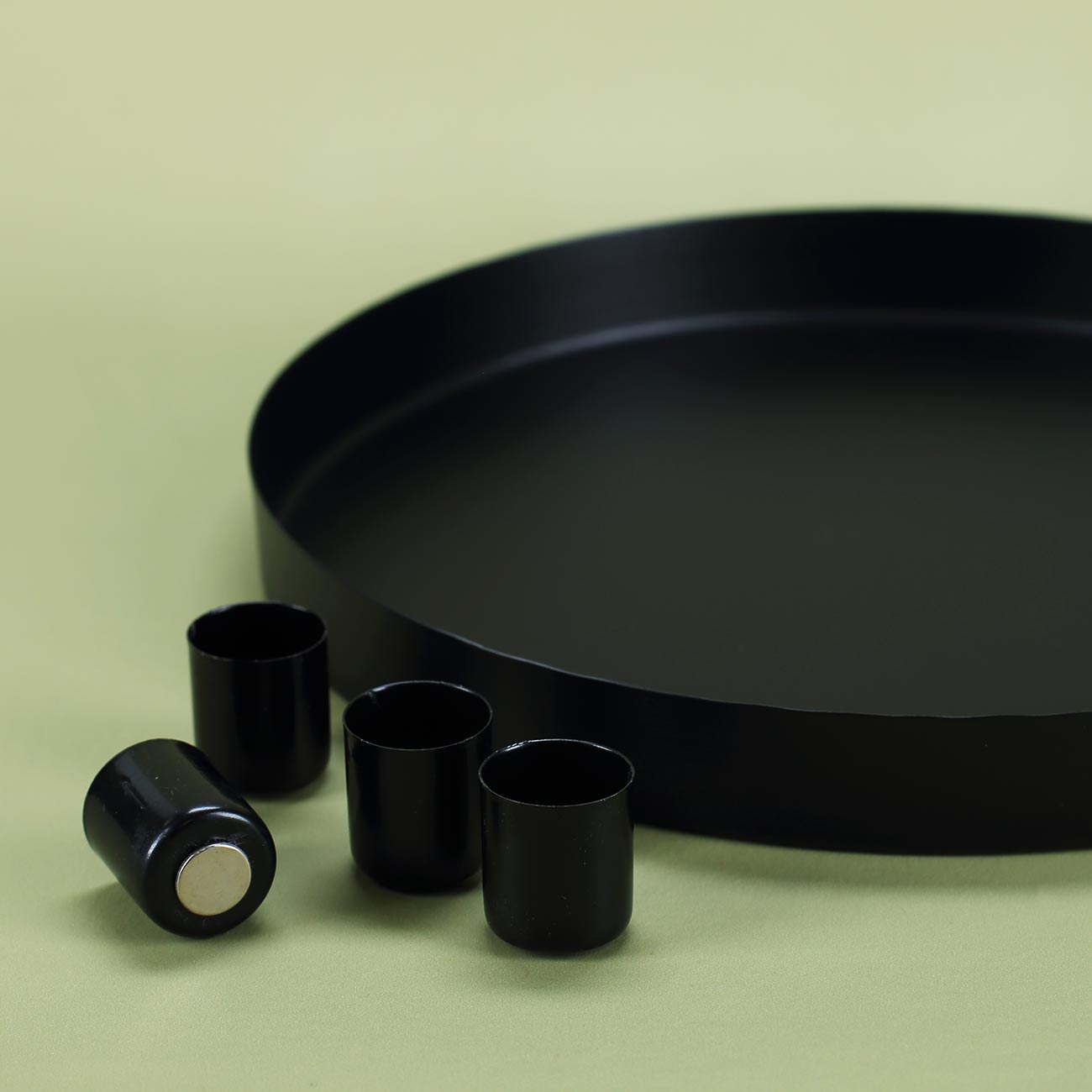 Schwarzes & rundes Tablett mit magnetischen Kerzenhaltern