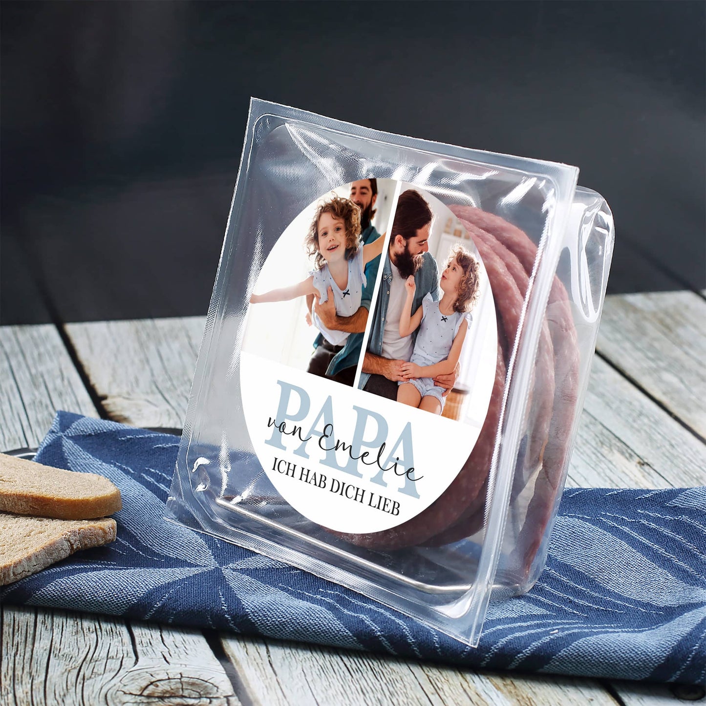 Salami Kabeltrommel für den besten Papa mit 2 Fotos