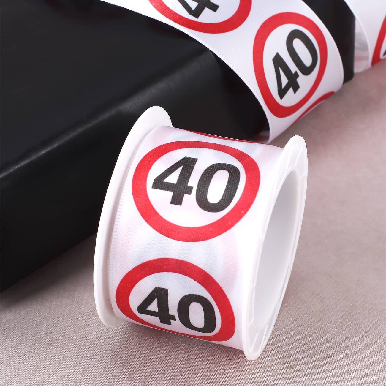 Dieses Geschenkband für kleine und große Aufmerksamkeiten ist „mal was anderes“. Auf dem Band steht "Happy Birthday" und ein Verkehrszeichen mit einer 40. Einfach um das Geschenk schlingen und schon ist es perfekt.
