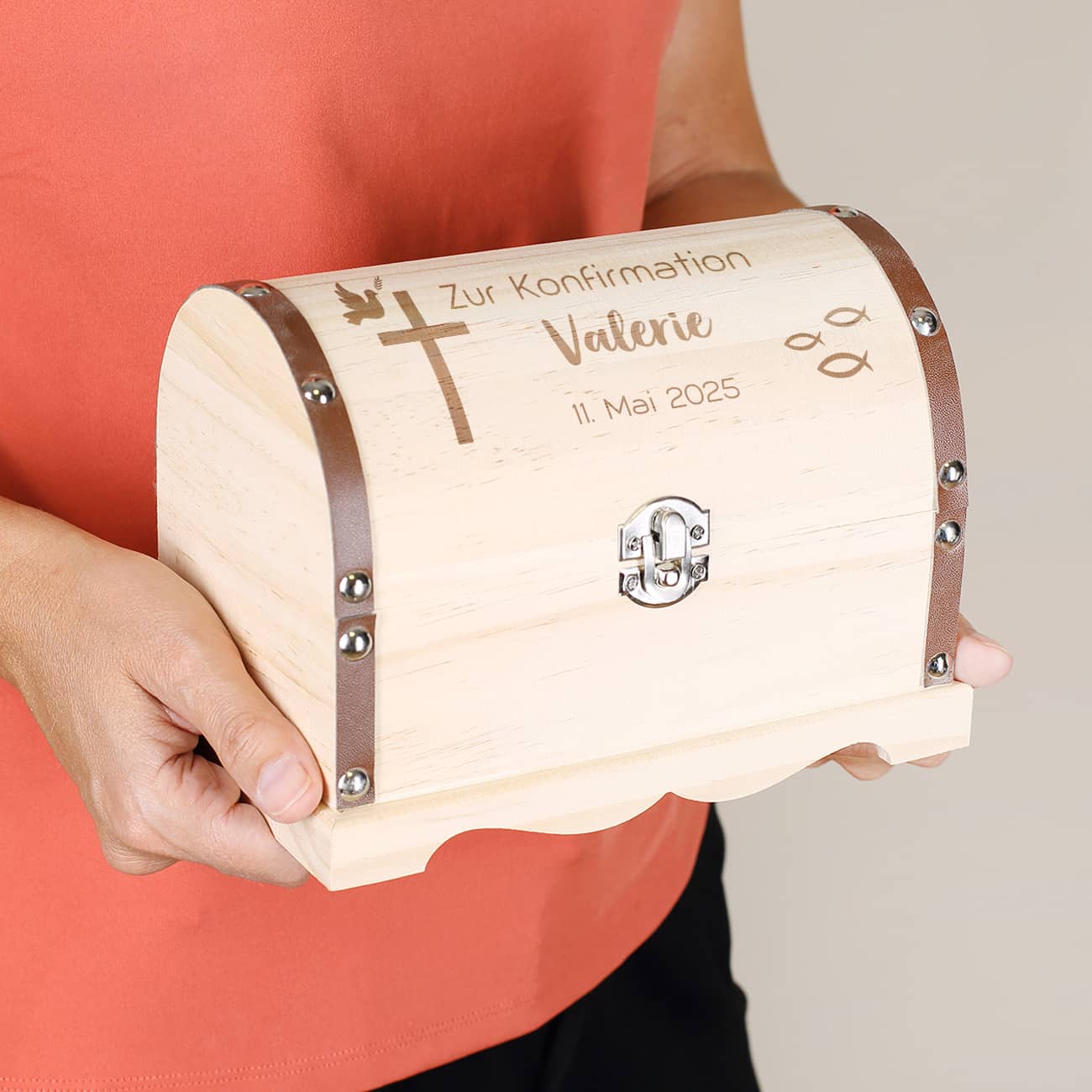 Schatztruhe zur Konfirmation mit Name & Datum graviert, 3 Größen auswählbar