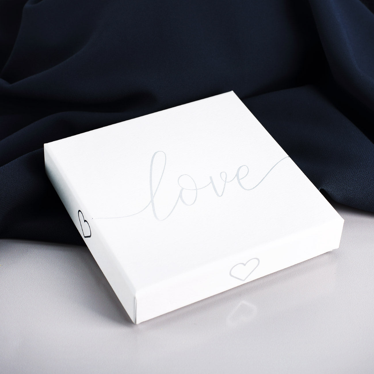 - Maße Geschenkschachtel: 12 cm x 2,5 cm x 12 cm (B/H/T)