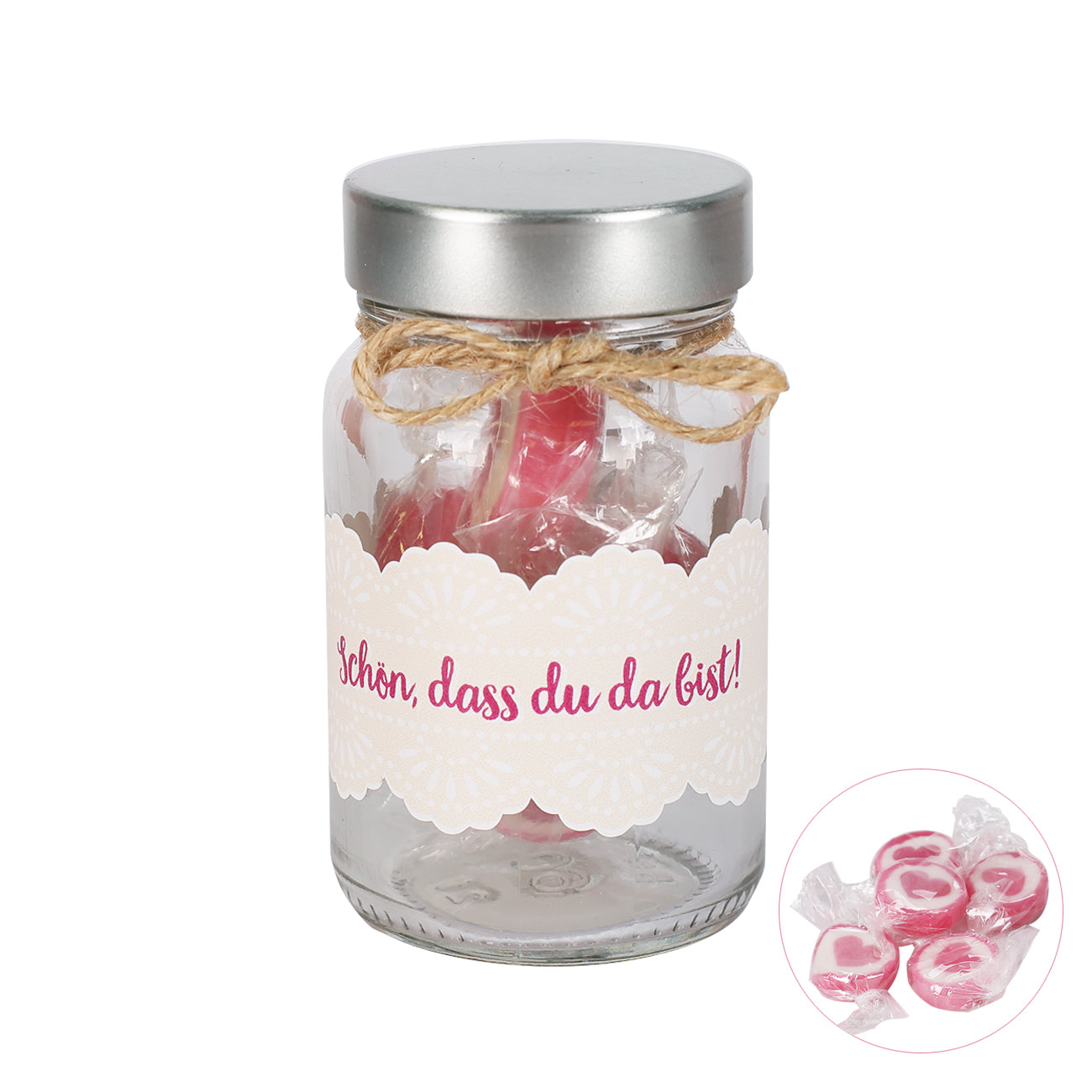 - mit Twist-off Deckel und Dekokordel