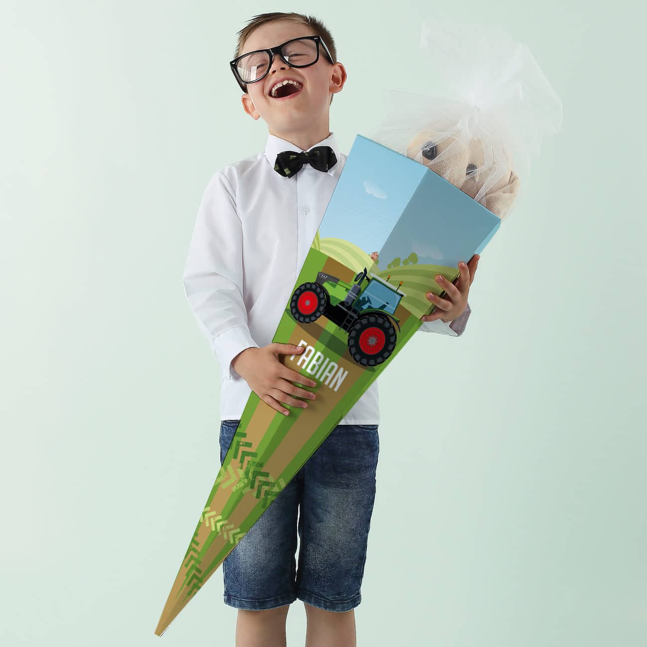 Die Zeit vergeht wie im Flug. Kaum gehen Sie in den Kindergarten, so folgt darauf auch schon die Einschulung. Wenn auch Sie schon lange auf der Suche nach der richtigen Schultüte sind, dann haben Sie Glück und werden sicher bei uns fündig werden. Mit der stabilen und hochwertig bedruckten Zuckertüte macht der Schulstart gleich noch mehr Spaß. Eine wirklich tolle Zuckertüte für den kleinen Traktor Fan.
