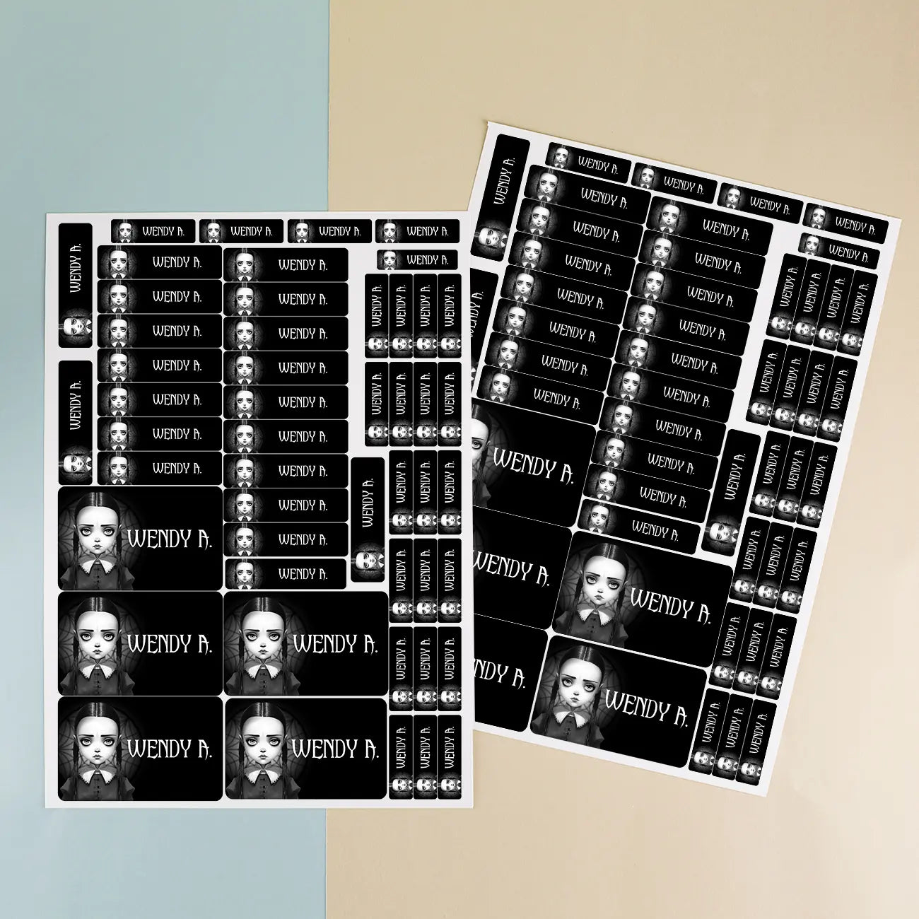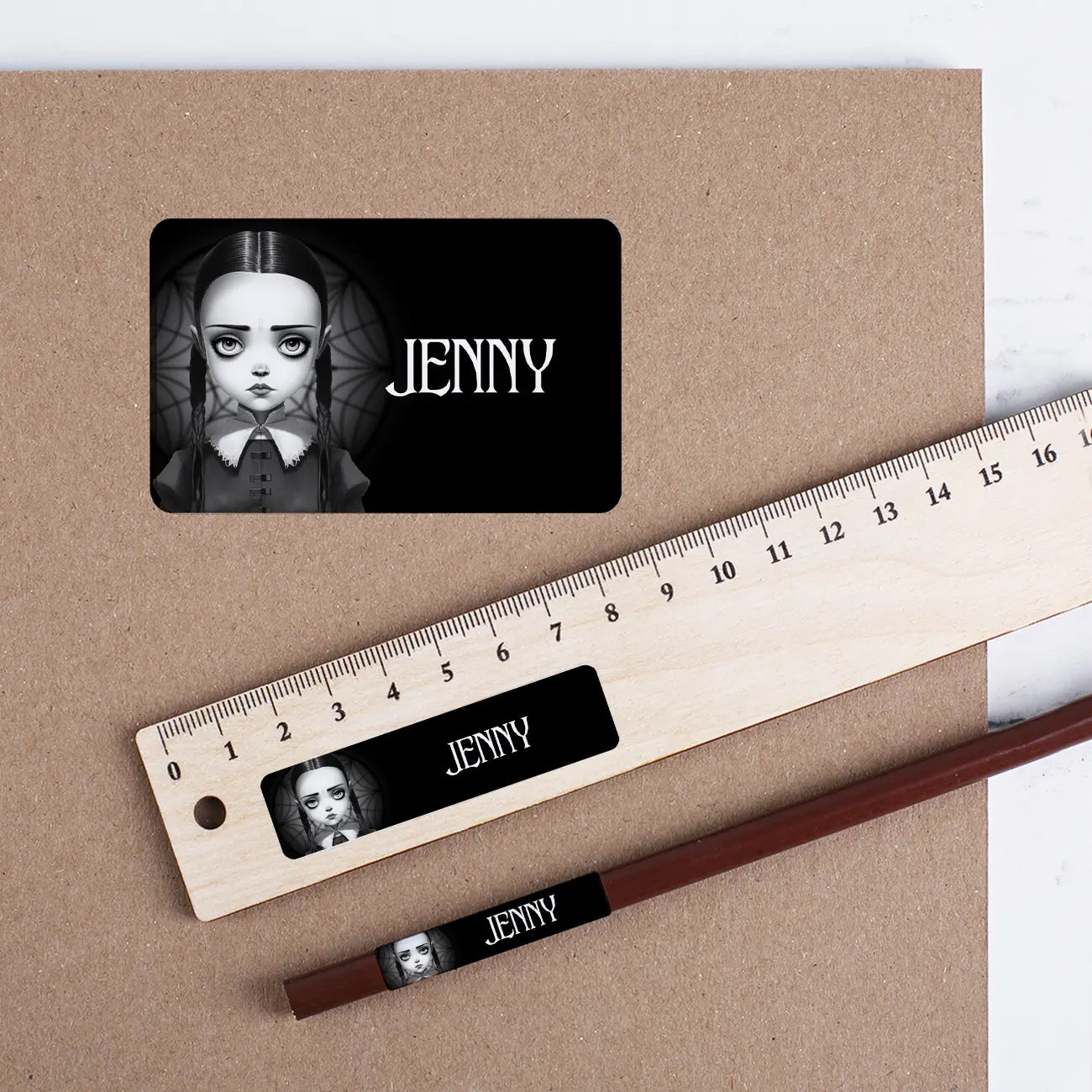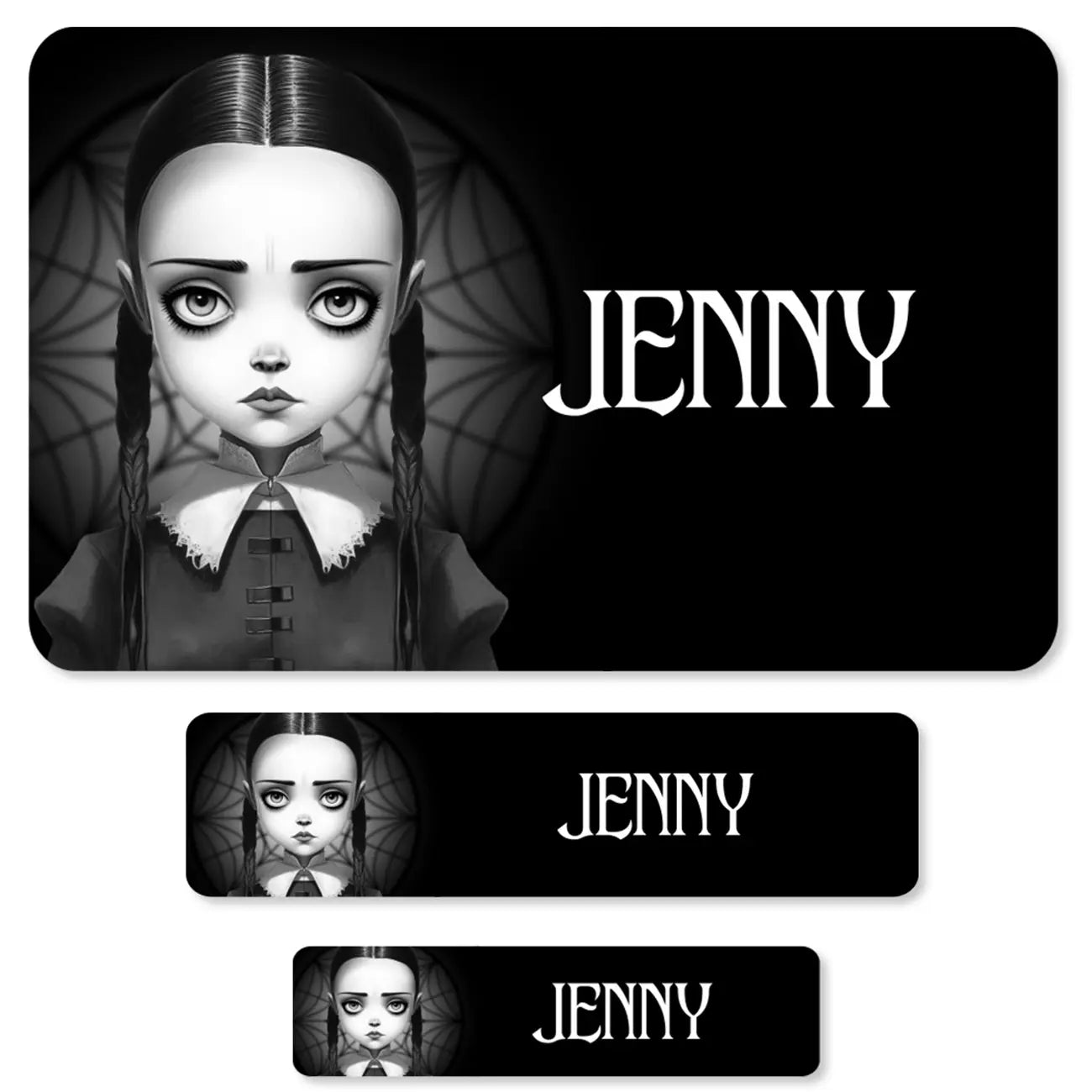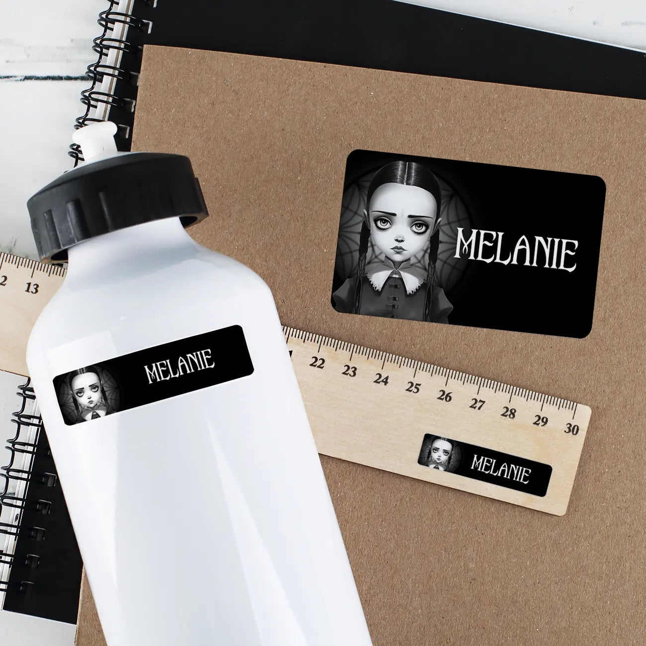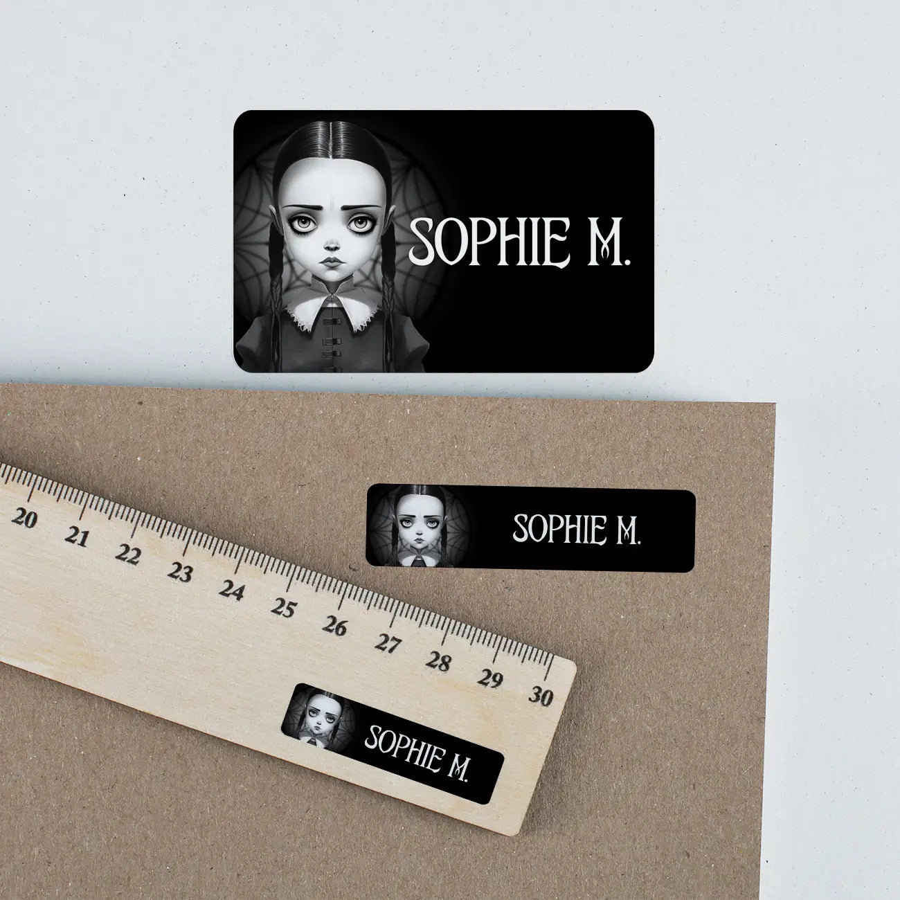 Mit diesen Schulaufkleber mit Gothic Mädchen als Motiv lässt sich ein klares Statement setzen! Hiermit kann man seine Persönlichkeit zum Ausdruck bringen und gleichzeitig auf praktische Art und Weise Schulutensilien markieren. Jeder Schulaufkleber zeigt ein Gothic Mädchen, das den Schulutensilien eine einzigartige Ästhetik verleiht. Darüber hinaus wird ein Name nach Wunsch hinzugefügt, um die Aufkleber personalisiert und individuell zu gestalten. Mit den Namensaufklebern kann man Büchern, Heften, Ordnern und anderen Schulmaterialien einen Hauch von Dunkelheit und Stil verleihen.