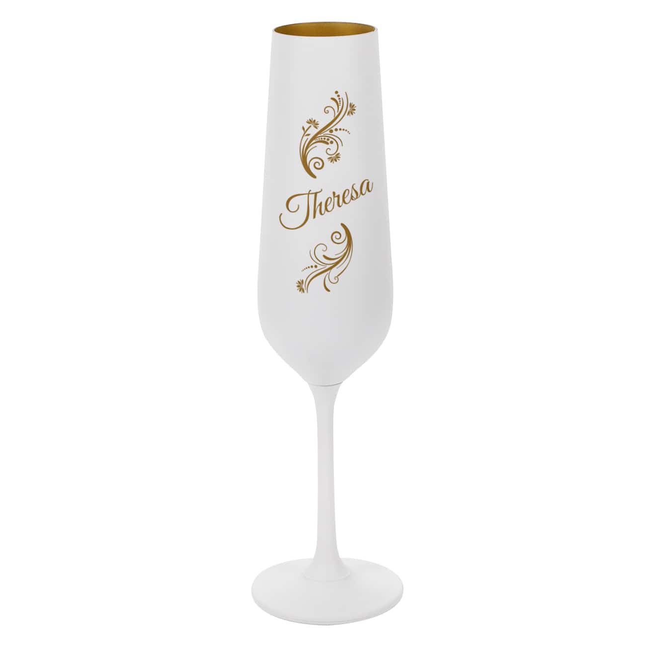 Sektglas in Weiß-Gold mit Namensgravur