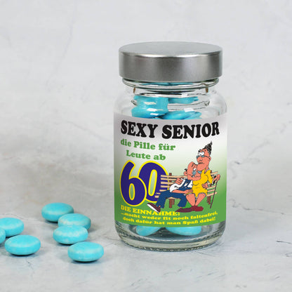Die SEXY SENIOR PILLEN ist heiß begehrt und ein Brüller auf jedem 60. Geburstag. Doch Vorsicht! Die Einnahme macht weder fit noch faltenfrei, doch dafür hat man Spaß dabei!