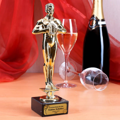 Die glänzende und muskulöse Statue besteht aus Kunststoff und der edle Sockel aus echtem Marmor. Auf dem schweren Marmorsockel prangt eine matt goldfarbende Plakette, die wir mit Ihren Wunschdaten hochwertig gravieren. Mit diesem individuellen und einzigartigen Erinnerungsstück stellen Sie alle anderen Geschenke in den Schatten.Geben Sie einfach den Namen des Beschenkten, den Grund für die Auszeichnung und den Namen des Schenkenden ist die Textzeien ein und wir erstellen das Produkt ganz nach Ihren Angaben. Mit Hilfe der Vorschaufunktion können Sie Ihre Daten noch einmal auf Ihre Richtigkeit prüfen.