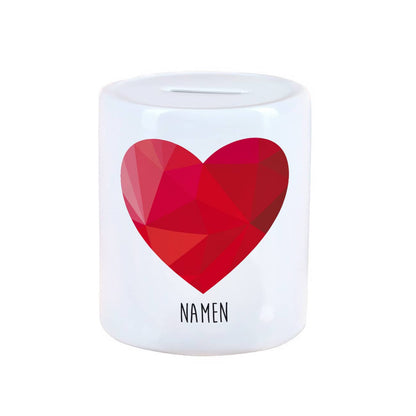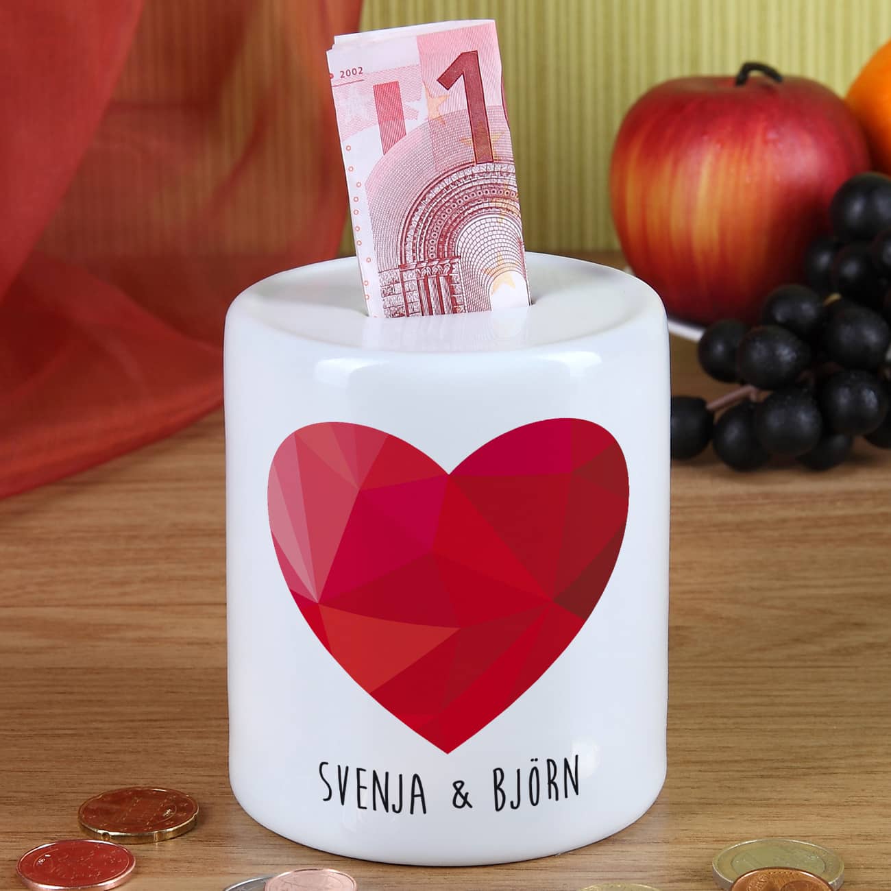 Spardose mit polygonalem Herz und Wunschnamen - Geschenk für Paare -