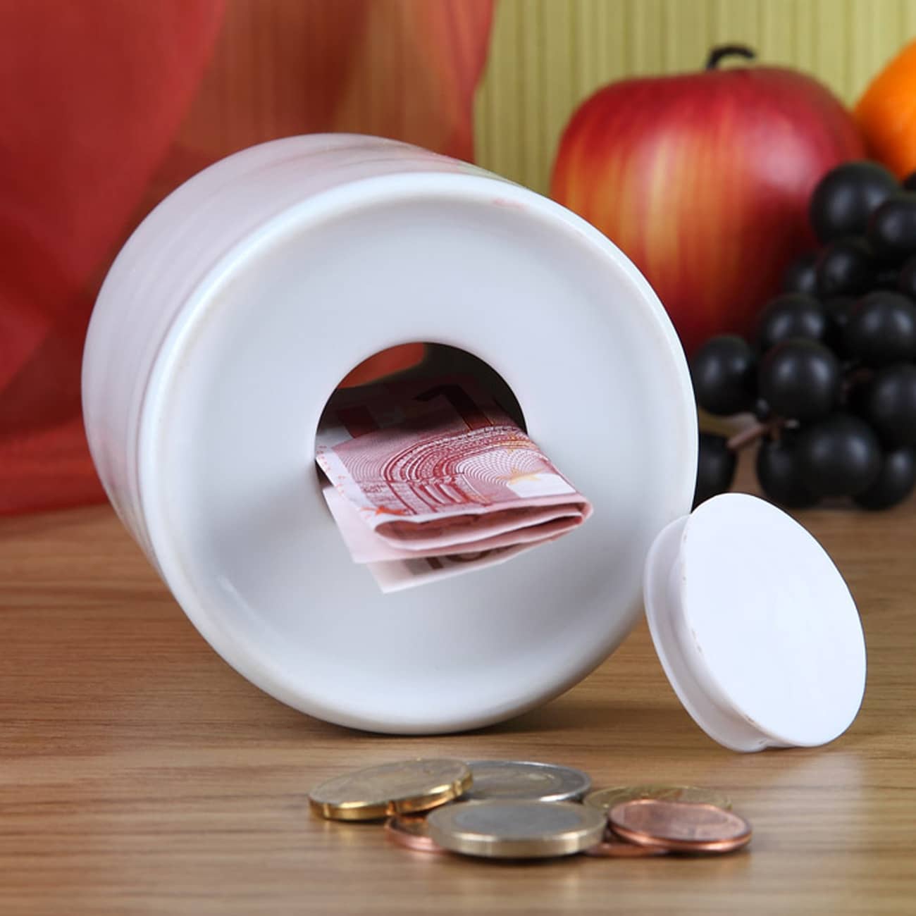 Sie können dieses praktische Geschenk mit einem entsprechenden Betrag befüllen. Verwenden Sie am besten Geldstücke, denn die klimpern so schön und machen die Dose zu einem echten Schwergewicht. Binden Sie noch eine Schleife drum und fertig ist ein nützliches und personalisiertes Geschenk. Die Spardose ist aus Keramik gefertigt und in Weiß erhältlich. Der Einwurfschlitz befindet sich oben auf der Spardose. Damit man seine Ersparnisse auch aufs Sparbuch bringen kann, befindet sich auf der Unterseite ein Gummipverschluss. Die Keramik Spardose ist eine wunderschöne Geschenkidee zur Hochzeit. Sie bleibt eine schöne Erinnerung an einen ganz besonderen Tag im Leben und hilft bei Sparen. So kann sich das Paar mit diesem Hochzeitsgeschenk früher oder später einen großen Wunsch erfüllen.