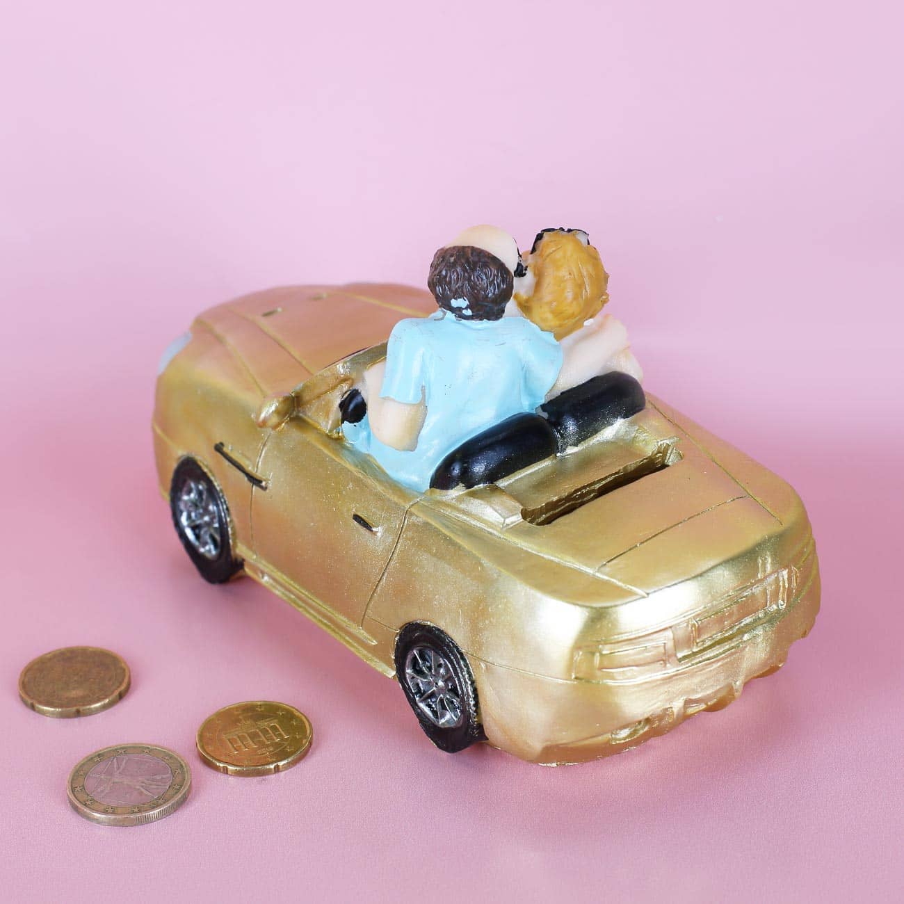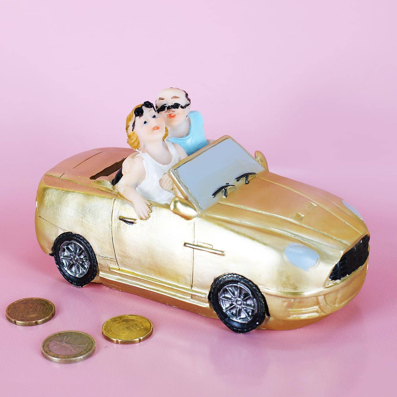Spardose Pärchen im goldenen Auto