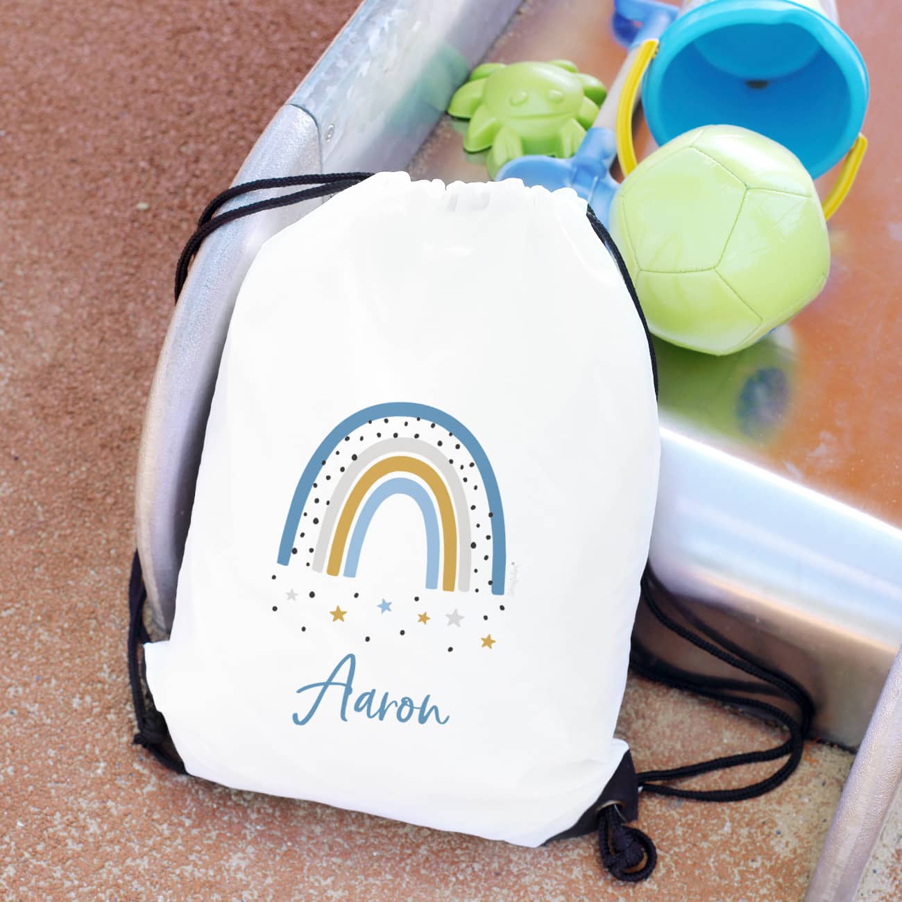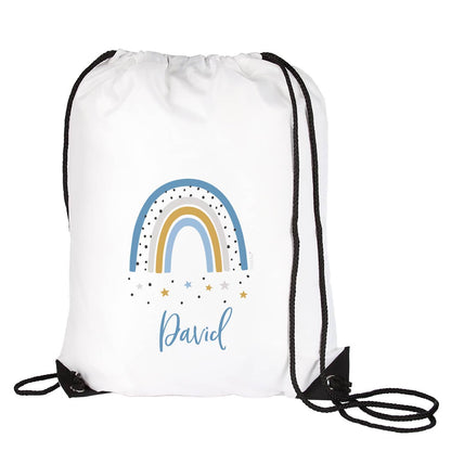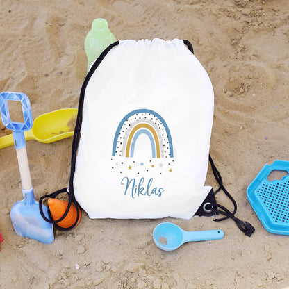 Sportbeutel mit Regenbogenmotiv und Name für Jungen