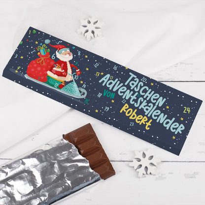 Taschen Adventskalender - 300g Schokolade als Weihnachtskalender mit Namensaufdruck