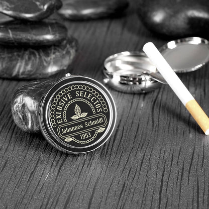 Taschenaschenbecher mit Gravur des Wunschnamens und Geburtsjahr