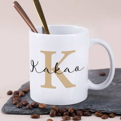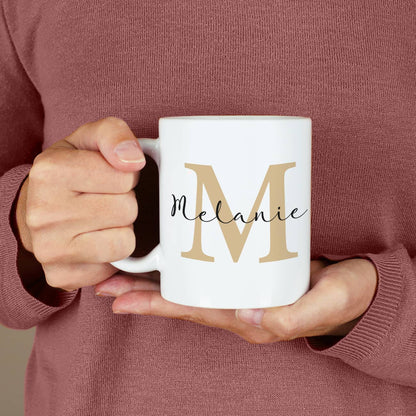 Moderne Tasse mit Initiale und Name personalisiert