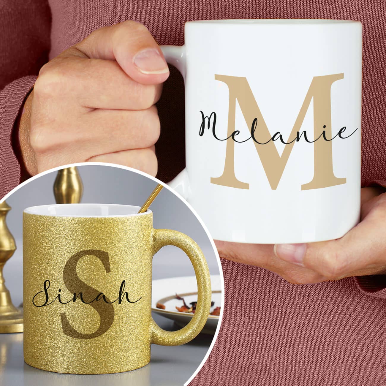 Als weiße Keramiktasse oder glitzernd in Gold