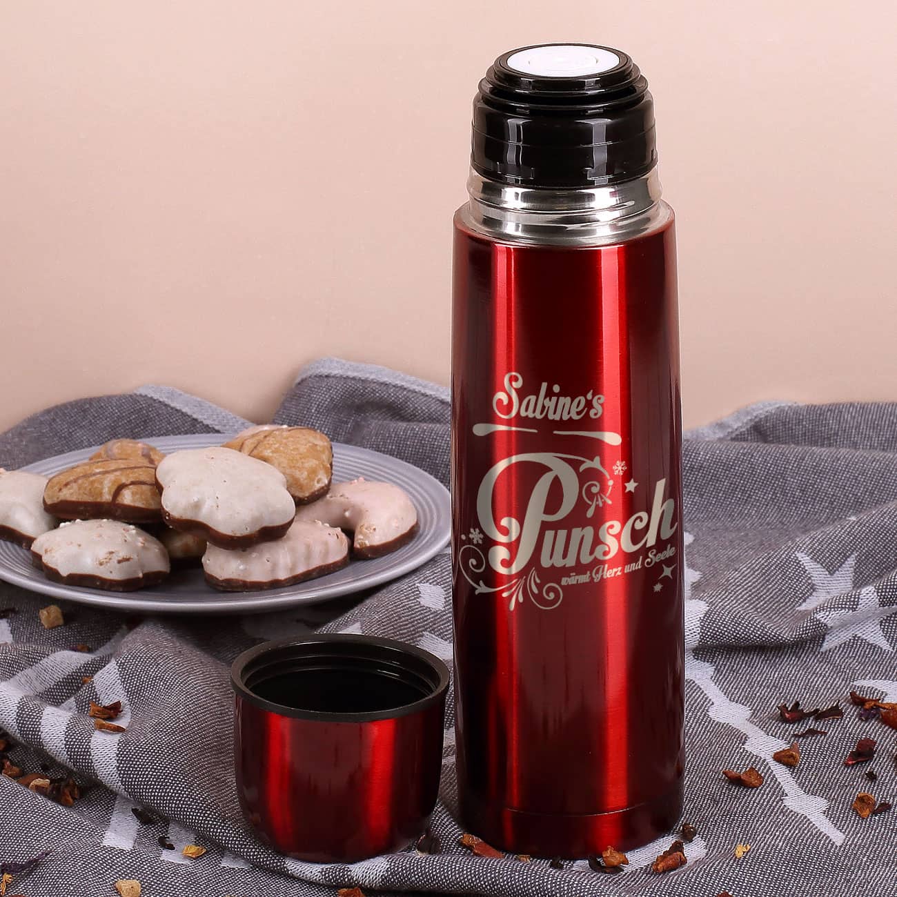 Thermosflasche graviert mit Punsch-Motiv und Name