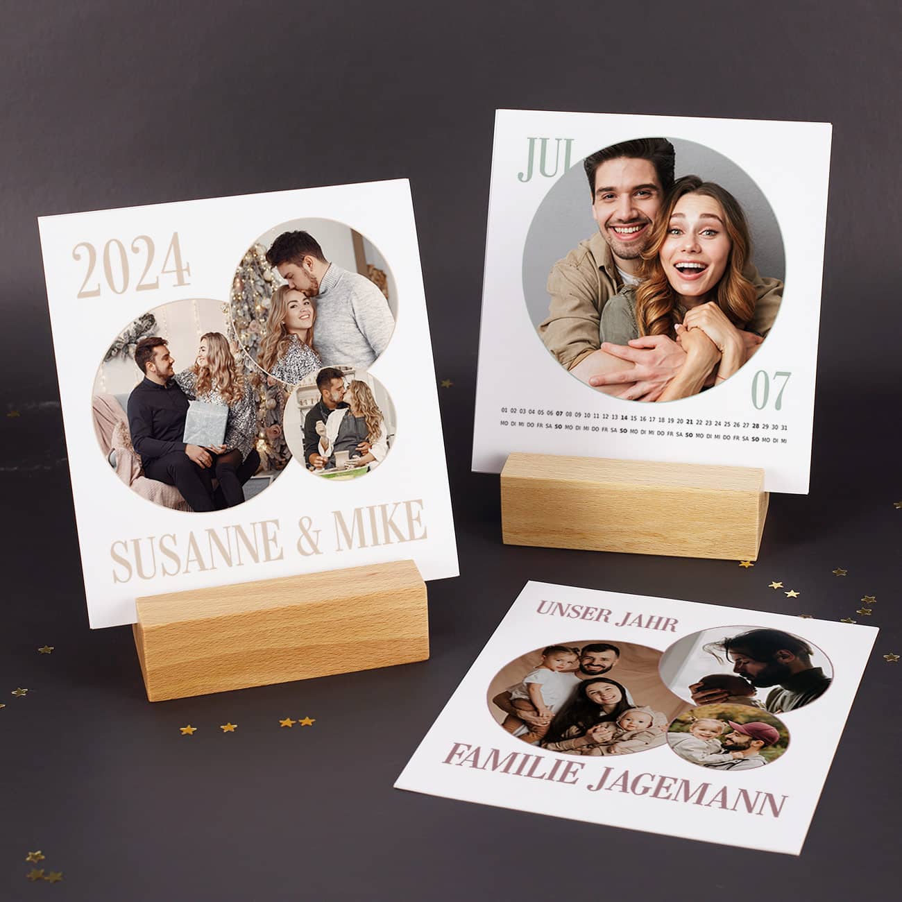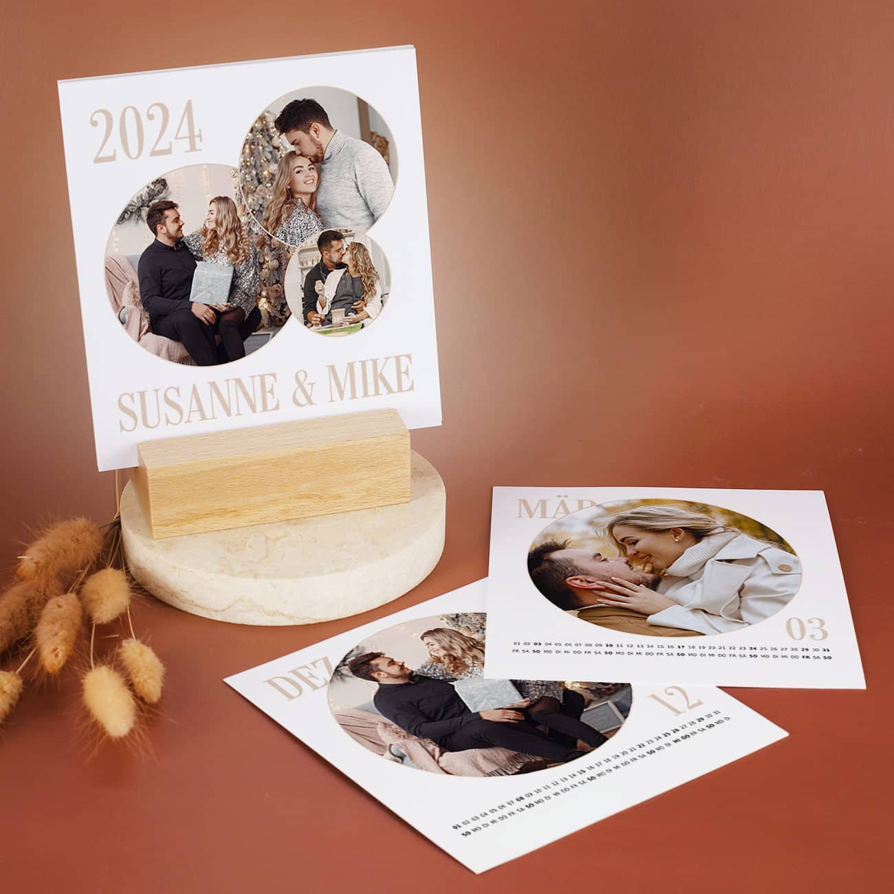 Tischkalender mit runden Fotos bedruckt - individuell gestaltbar