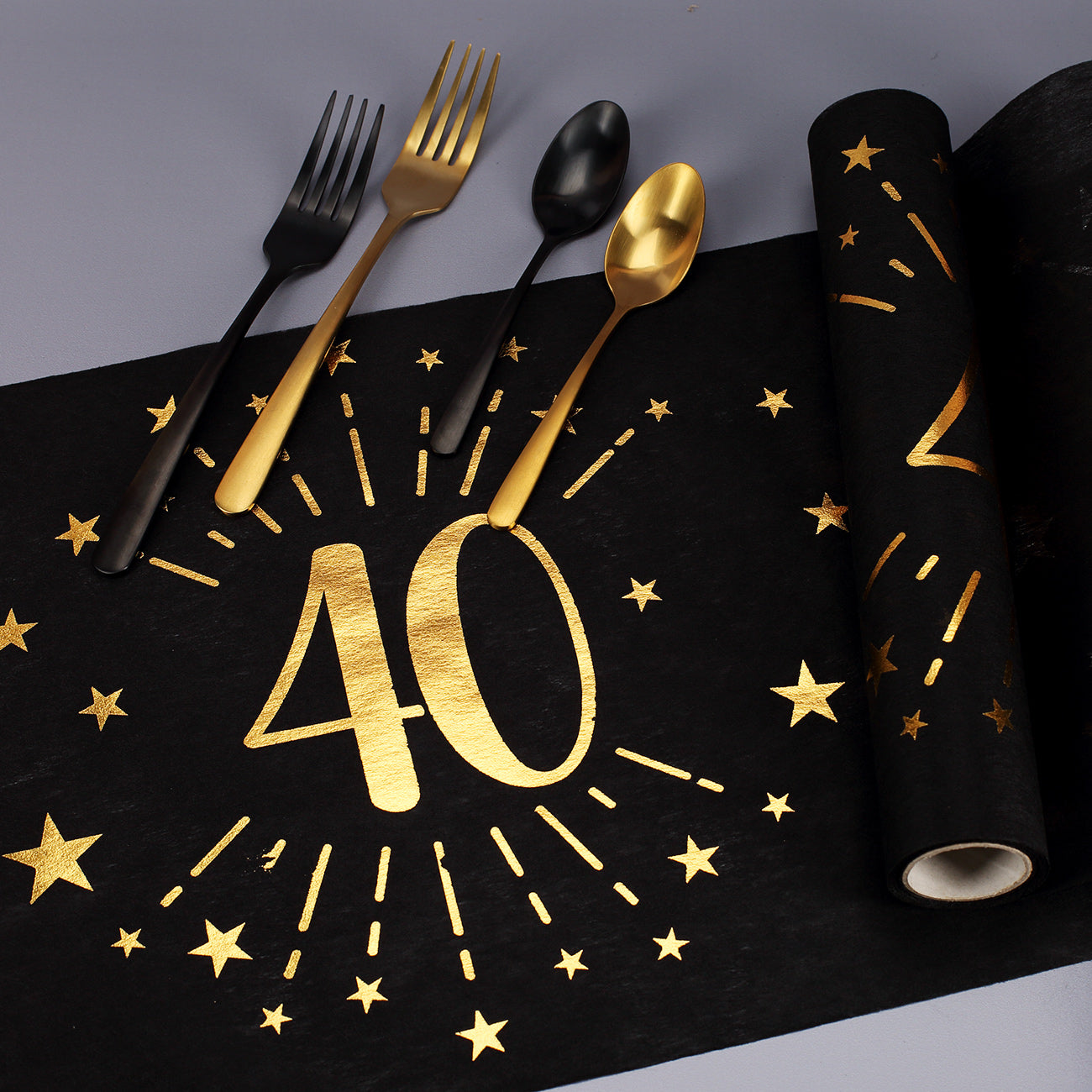 Tischläufer aus Vlies zum 40. Geburtstag - schwarz/gold