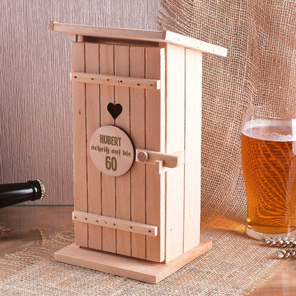 Überraschen Sie das Geburtstagskind mit einer einzigartigen und humorvollen Geschenkidee: einem personalisierten Toilettenhäuschen aus Holz! Dieses liebevoll handgefertigte Miniatur-Plumpsklo ist nicht nur ein echter Hingucker, sondern sorgt garantiert für Lacher auf jeder Geburtstagsfeier.