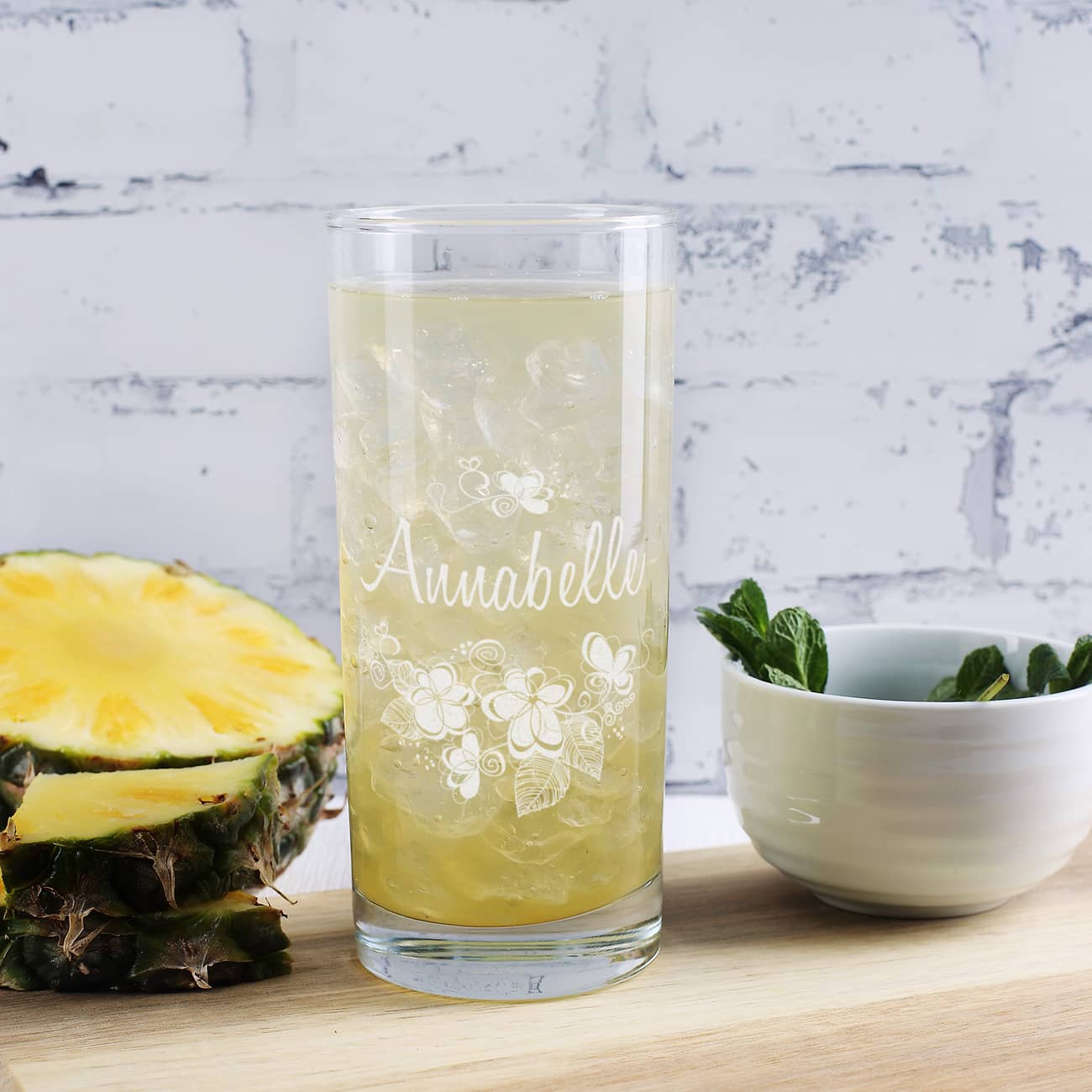 Blüten und Blätter werden zusammen mit Ihrer Namensgravur auf das Trinkglas graviert. Geben Sie uns einfach Ihren Namen nach Wunsch an, wir positionieren ihn zwischen die Blumen. Das verspielte Blüten Motiv passt zu jedem erdenklichen Anlass, daher können Sie das Trinkglas das ganze Jahr über verschenken. Beispielsweise können Sie es an jemanden als Geburtstagsgeschenk überreichen, wenn Sie nach etwas Persönlichem suchen. Personalisierte Geschenke können aber auch zwischendurch eine Freude machen, wie zum Beispiel als Mitbringsel oder als Dankeschön Geschenk, wenn Ihnen jemand einen Gefallen getan hat.