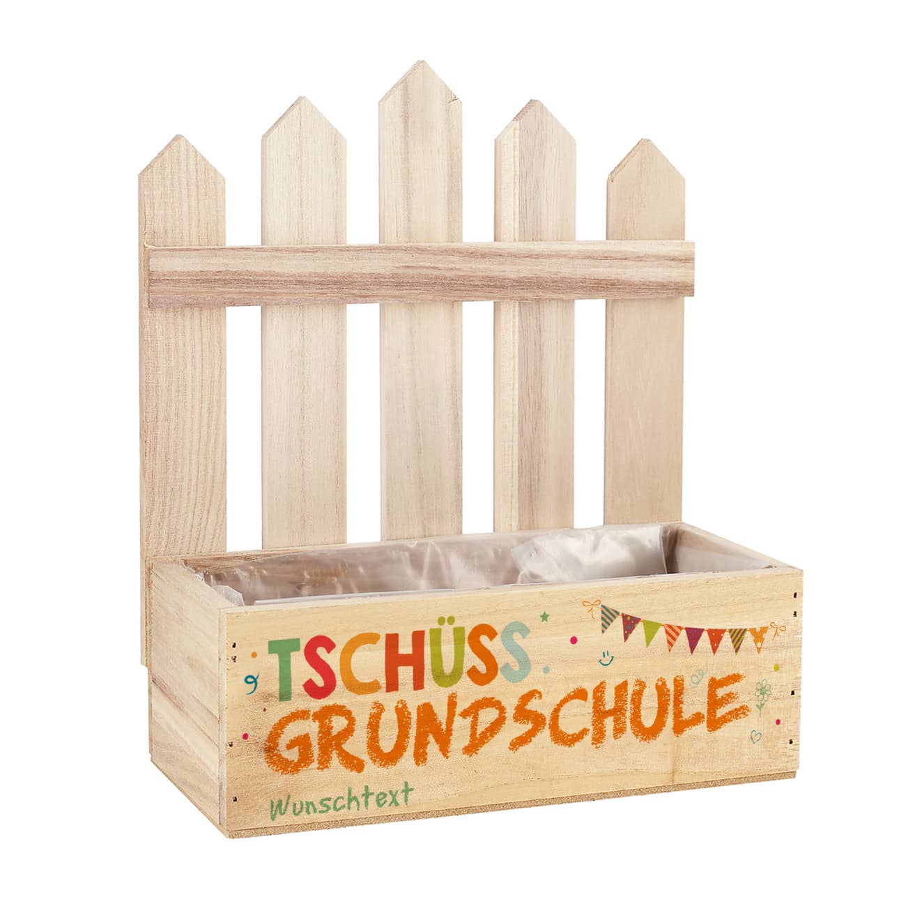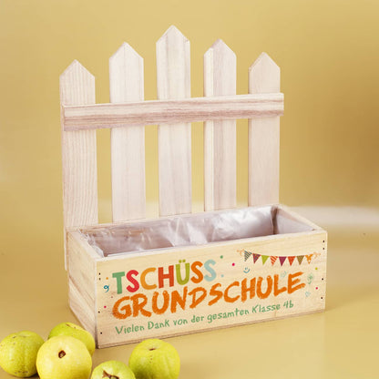 Tschüss Grundschule - Pflanzkiste als Abschiedsgeschenk für Lehrer