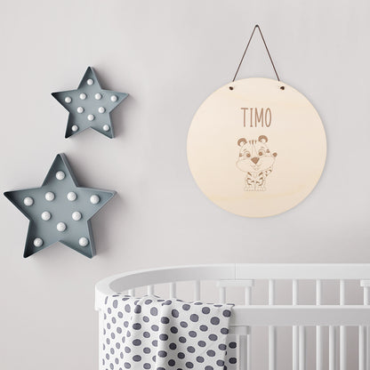 geschenke für jungPersonalisierbares Holzschild mit Tiger – Kinderzimmer-Dekoration