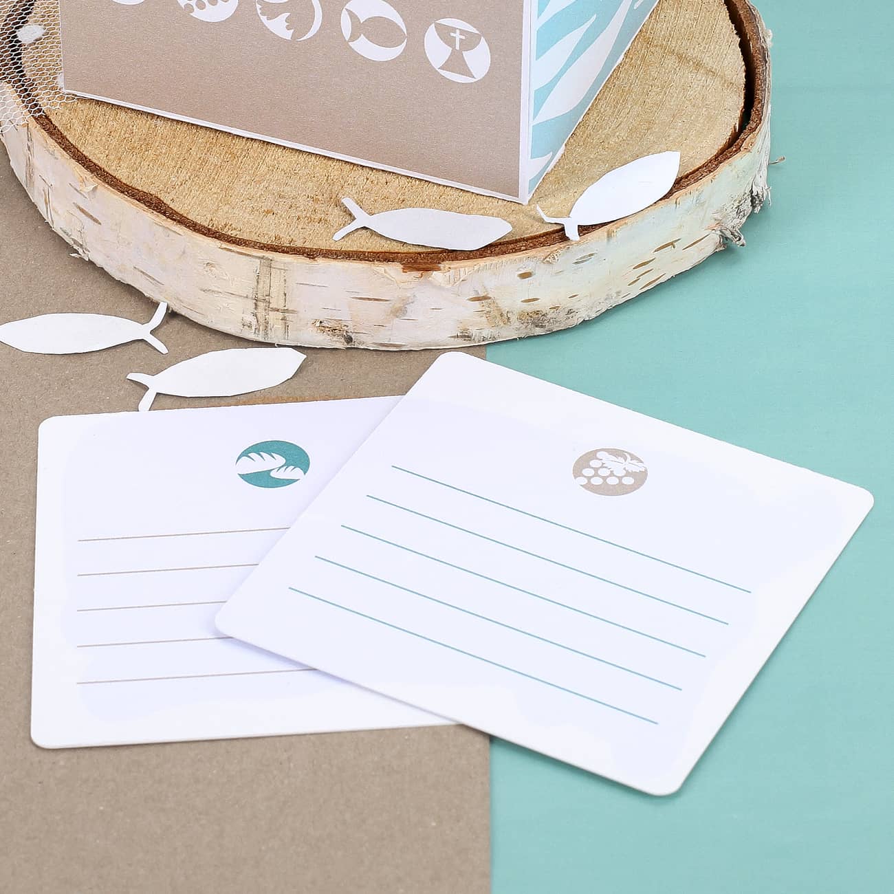 Auf zwei Innenwänden gibt es Laschen mit Karten. Auf diesen Karten können Sie Ihren Gruß oder Glückwunschtext hinterlassen. Die Laschen sind so groß, dass man dort auch eine Gutscheinkarte im EC-Format sowie Geldscheine verstauen kann. Jede Überraschungsbox wird liebevoll in Handarbeit für Sie produziert und mit mehreren 3D-Elementen verziert. Sie ist eine ausgefallene Verpackung für Geldgeschenke, Gutscheine und Glückwünsche zur Kommunion.
