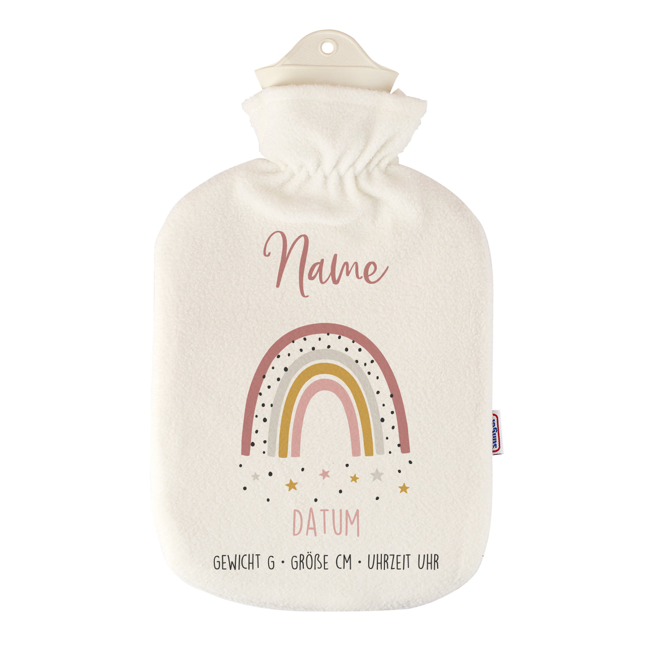 Wärmflasche zur Geburt mit rosa Regenbogen