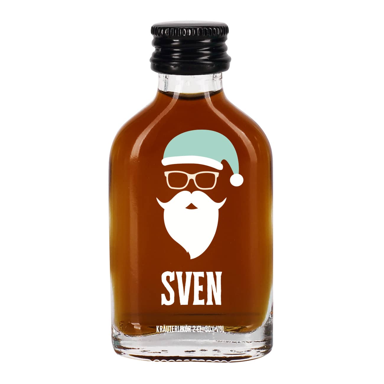 Weihnachtlicher Schnaps mit Hipster Nikolaus Motiv und Ihrem Namen