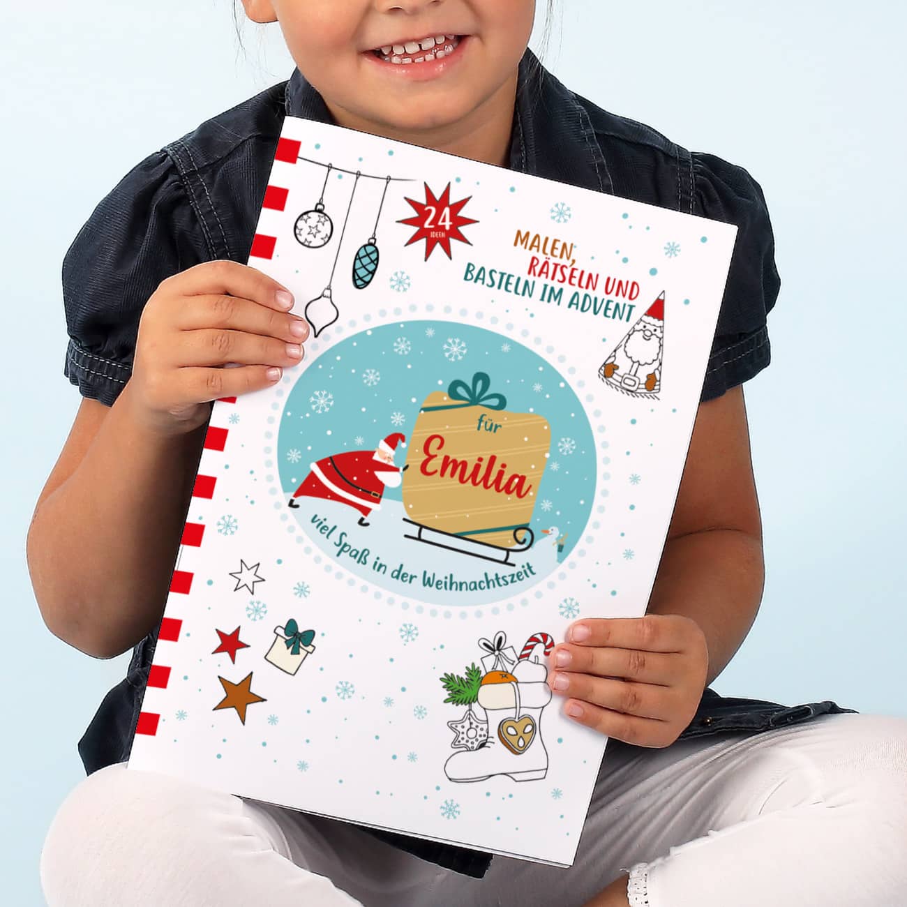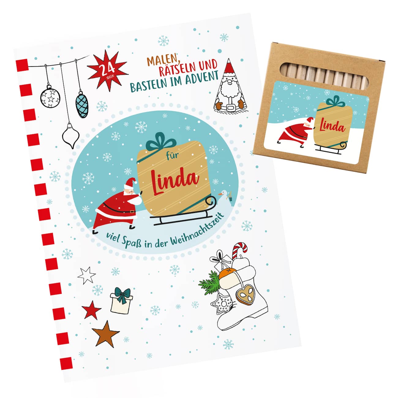 Weihnachts-Malbuch mit Name - 24 Seiten Malen, Basteln, Rätseln DIN A4