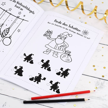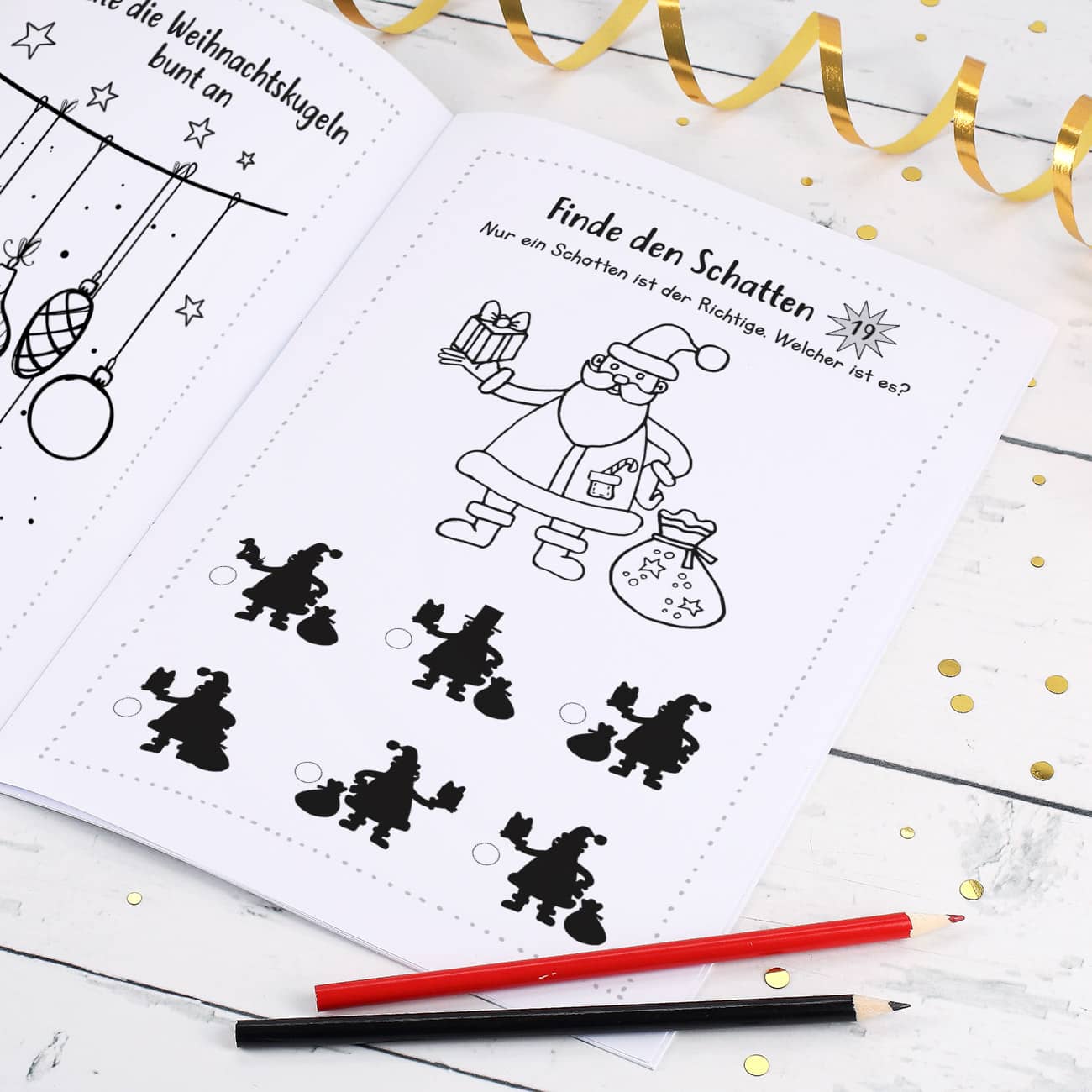 In dem weihnachtlichen Malbuch finden Kinder 24 abwechslungsreiche Aufgaben, die helfen die Wartezeit auf das Fest zu verkürzen. Dazu gehören Ausmalbilder, einfache Bastelanleitungen, Labyrinthe und Fehlerbilder rund um das Thema Weihnachten.