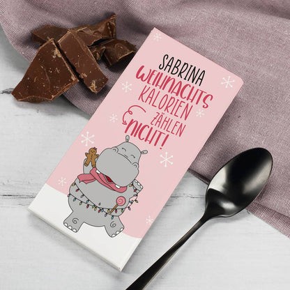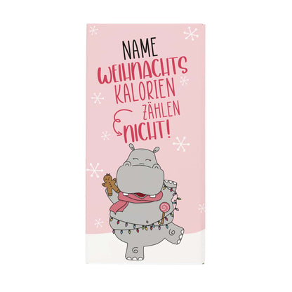 Weihnachtskalorien zählen nicht! - 100g Schokolade mit Wunschname und Nilpferd