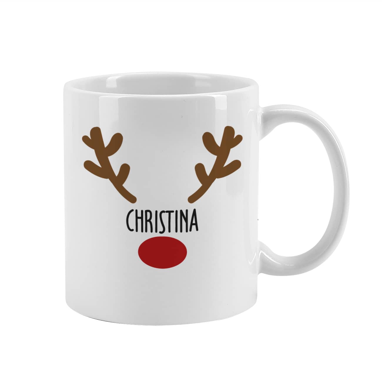 Weihnachtstasse mit Rentiernase, Geweih und Ihrem Wunschnamen