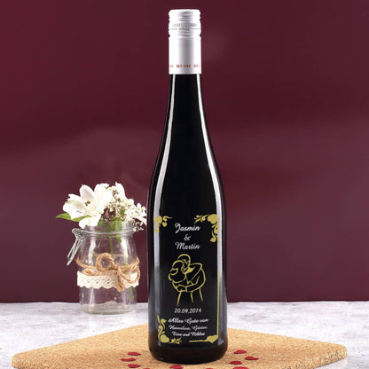 Weinflasche zur Hochzeit mit persönlicher Gravur