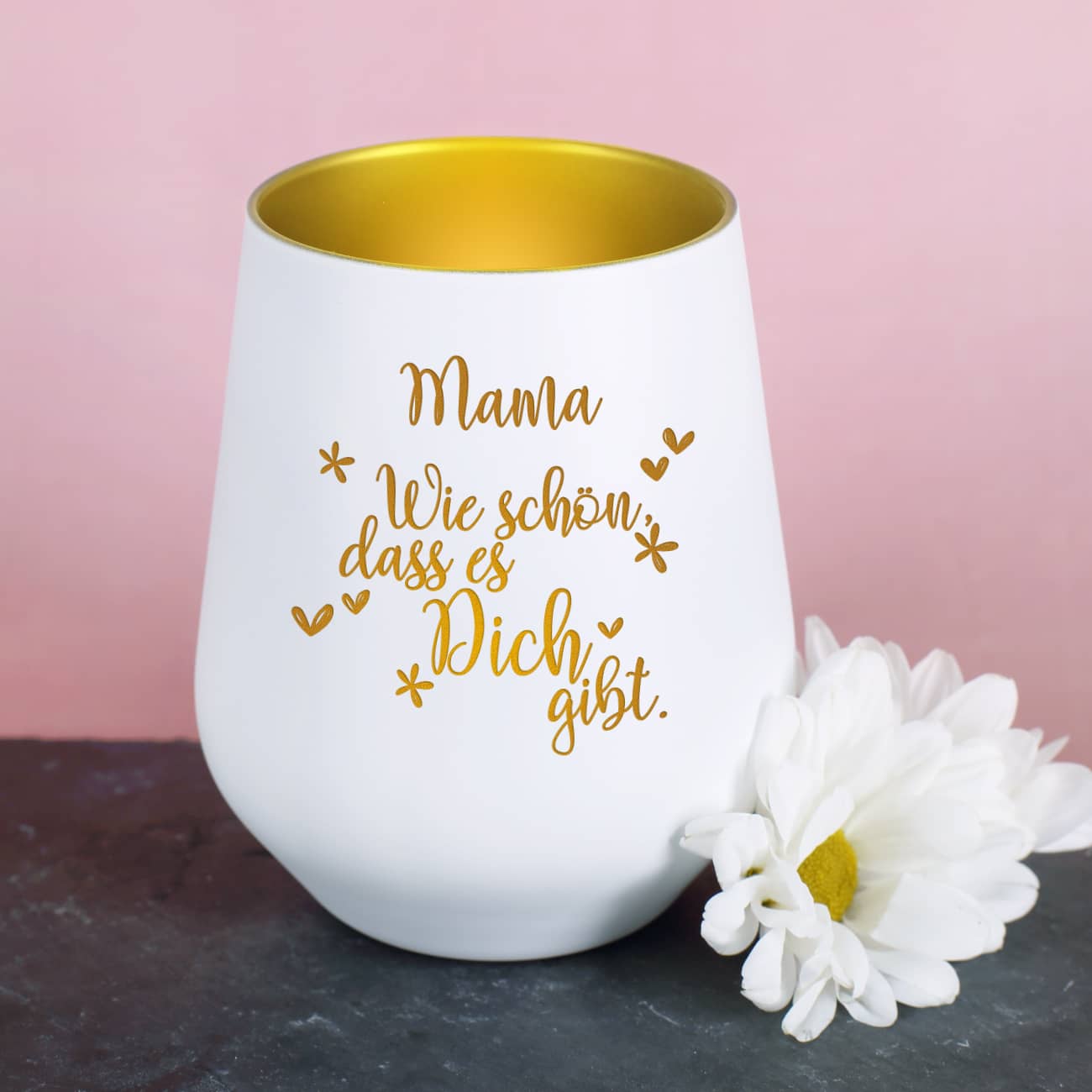 Bei manchen Menschen sind wir einfach dankbar dafür, dass es sie gibt! Überreichen Sie an diese lieben Personen ein elegantes Windlicht, das mit einer persönlichen Gravur versehen wird. Der weiß-goldene Kerzenbecher wird mit dem Spruch "Wie schön, dass es dich gibt" und einem Namen nach Wunsch bedruckt. Verschenkt werden kann das Windlicht als individuelles Präsent zu jedem erdenklichen Anlass, wie zum Beispiel als Geburtstagsgeschenk, Muttertagsgeschenk oder einfach zwischendurch als Dankeschön Geschenk. So können Sie Ihrer Mama, Oma, besten Freundin und vielen mehr eine liebe Aufmerksamkeit überreichen.