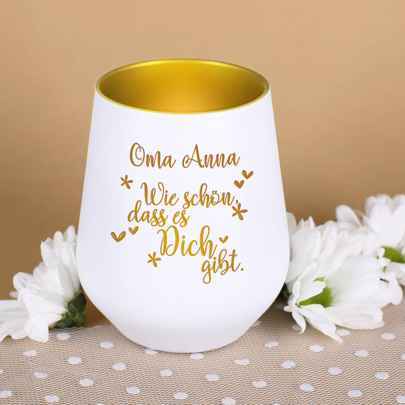 Weiß-goldener Kerzenbecher mit persönlicher Gravur