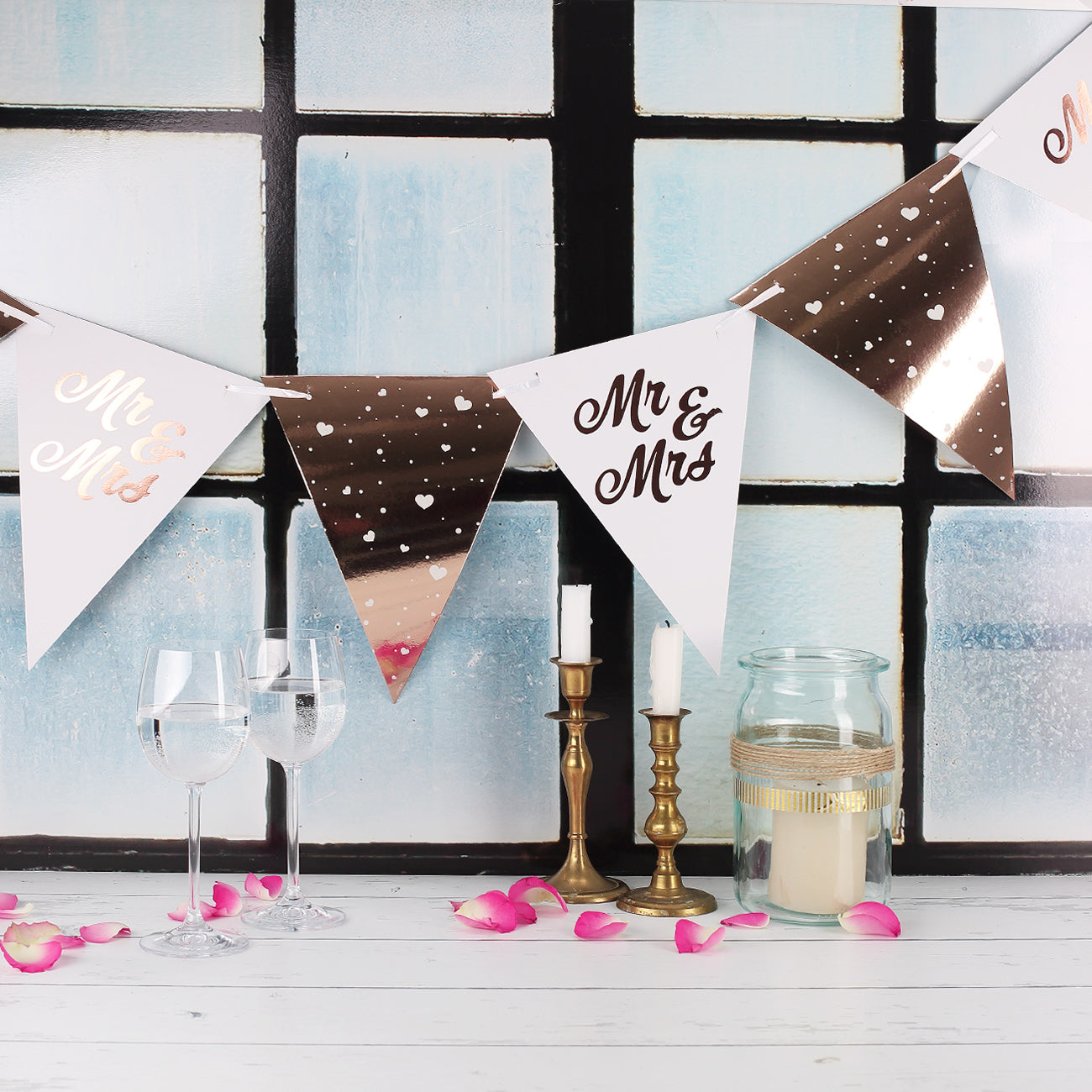 Wimpelkette Mr & Mrs Rosegold