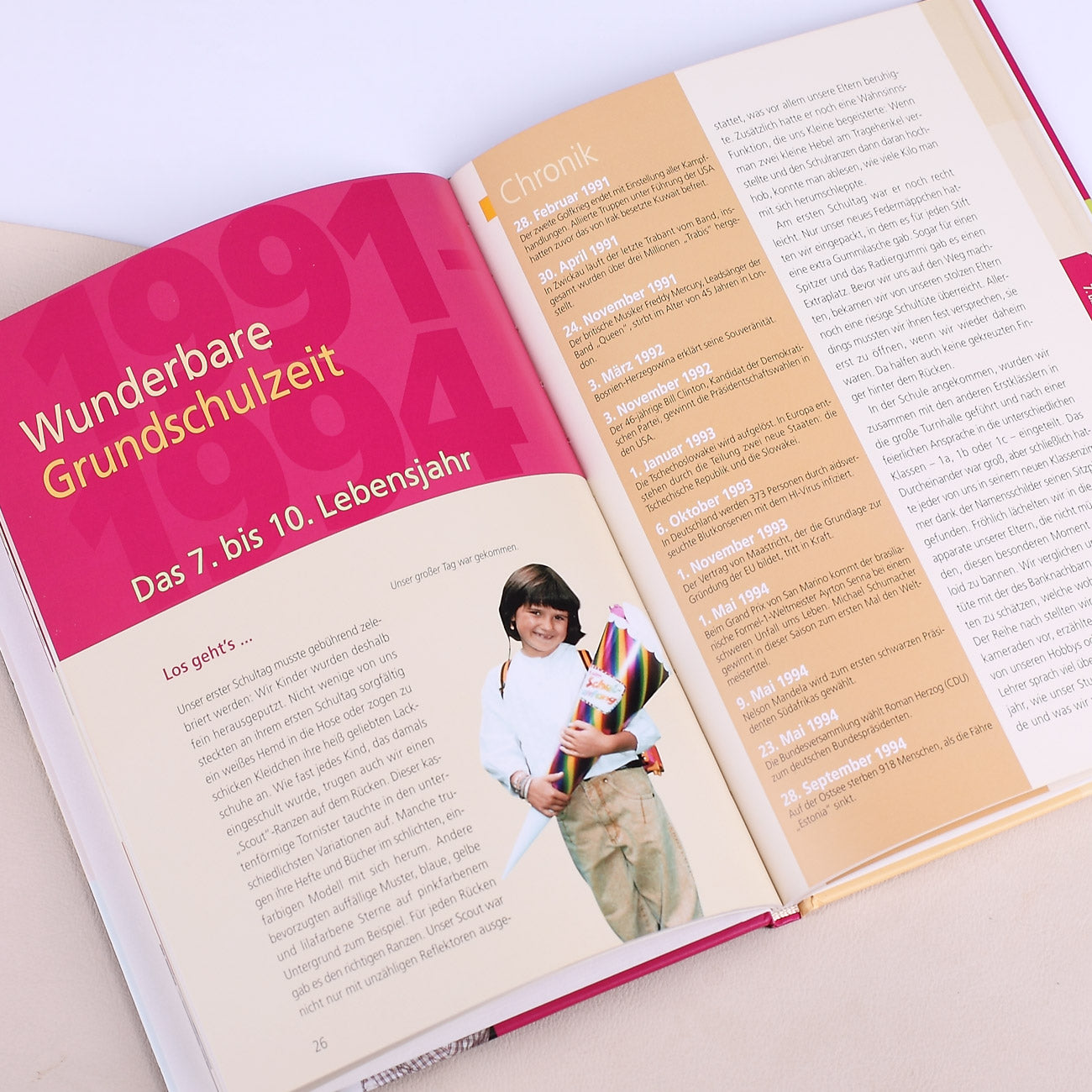 In fünf Kapiteln berichtet Anna-Lena Roth, selbst Jahrgang 1985, über das alltägliche, kulturelle und politische Geschehen dieser schönen Zeit. Die Kapitel sind unterteilt in die Lebensjahre. So setzt sich das erste Kapitel aus dem 1. bis 3. Lebensjahr, das 2. Kapitel aus dem 4. bis 6., das 3. Kapitel aus dem 7. bis 10., das 4. Kapitel aus dem 11. bis 14. und das letzte Kapitel aus dem 15. bis 18. Lebensjahr zusammen. Zusätzlich zu den jeweiligen Kapiteln, wurden die wichtigsten Geschehnisse in einer Chronik festgehalten.