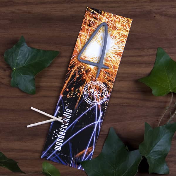 Eine funkensprühende Botschaft zum Geburtstag, Jubiläum, Jahrestag, Fest, Hochzeitstag, Silvester,...! Dekorieren Sie mit diesen Wunderkerzen Torten, Blumen, Eis, Gutscheine und Flaschen. Egal, zu welchen Anlass Sie eine Vier brauchen, die Wunderkerze sorgt für Begeisterung!