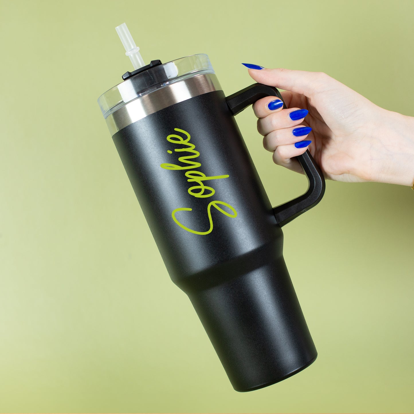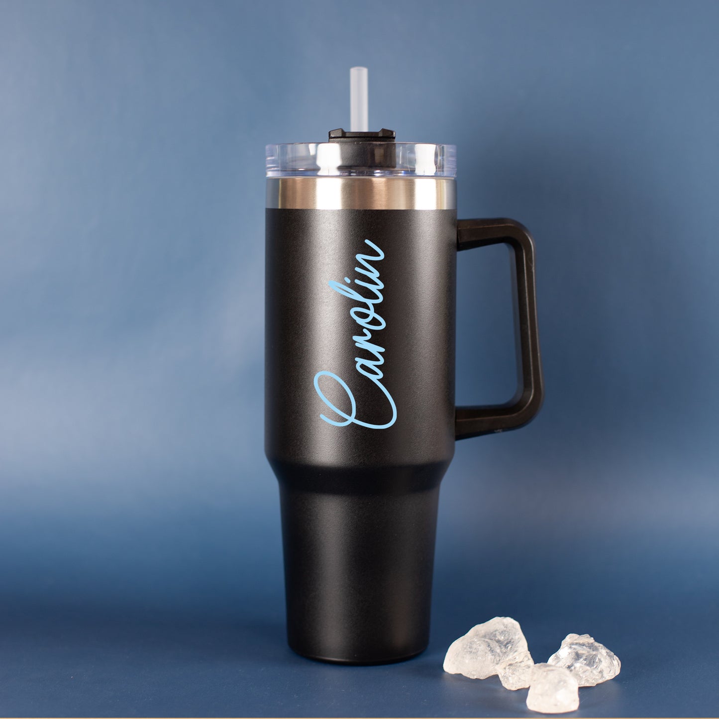 Der Thermobecher hält Getränke lange warm oder kalt und bietet mit 1,2 Litern Fassungsvermögen jede Menge Platz für Kaffee, Tee, Wasser oder Eistee. Dank Deckel mit 3 Positionen und praktischem Strohhalm mit Stopp-Ring ist er ideal für alle, die gerne viel trinken – egal ob im Auto, beim Sport oder im Büro. Ein hochwertiges, personalisiertes Geschenk für alle, die Stil und Funktion lieben.