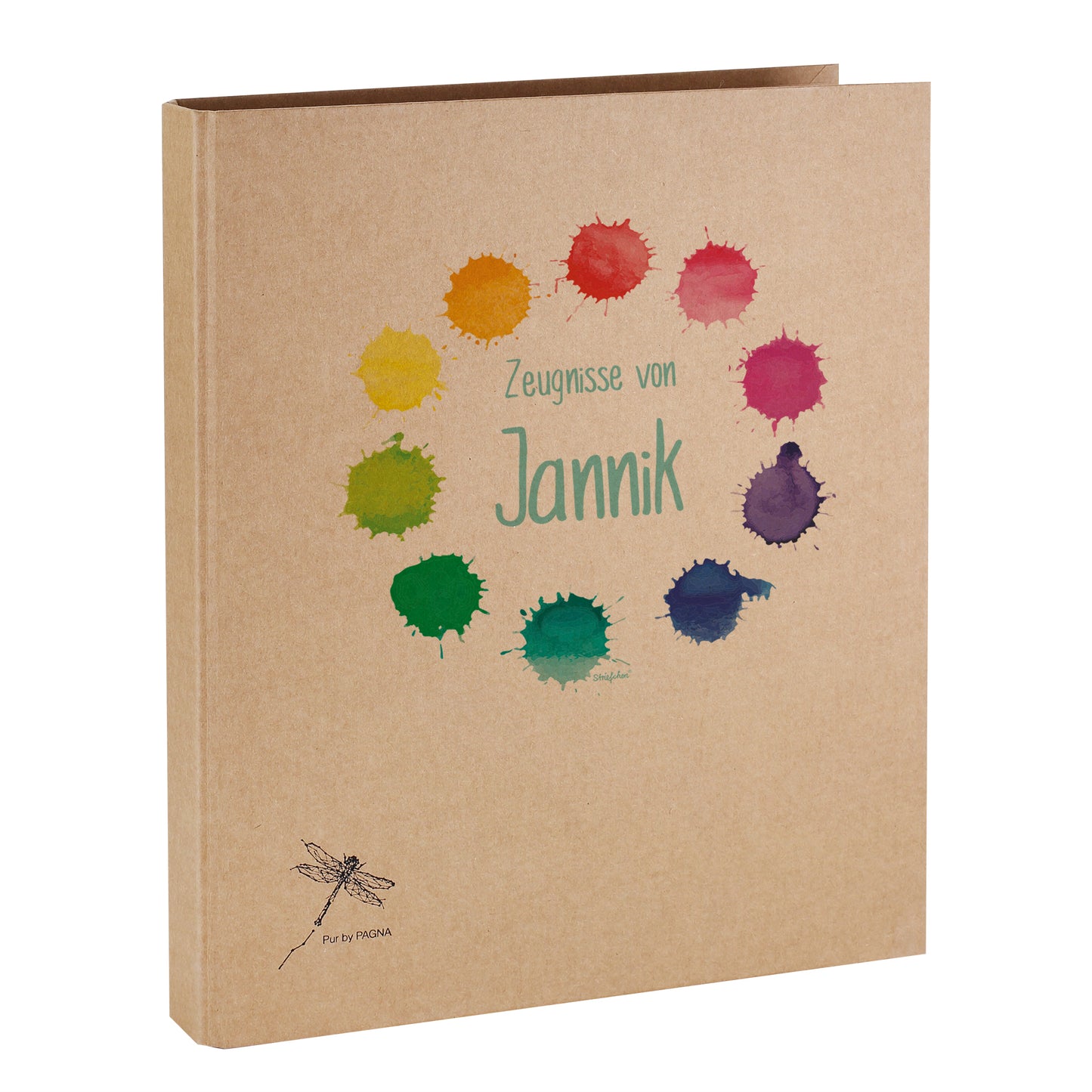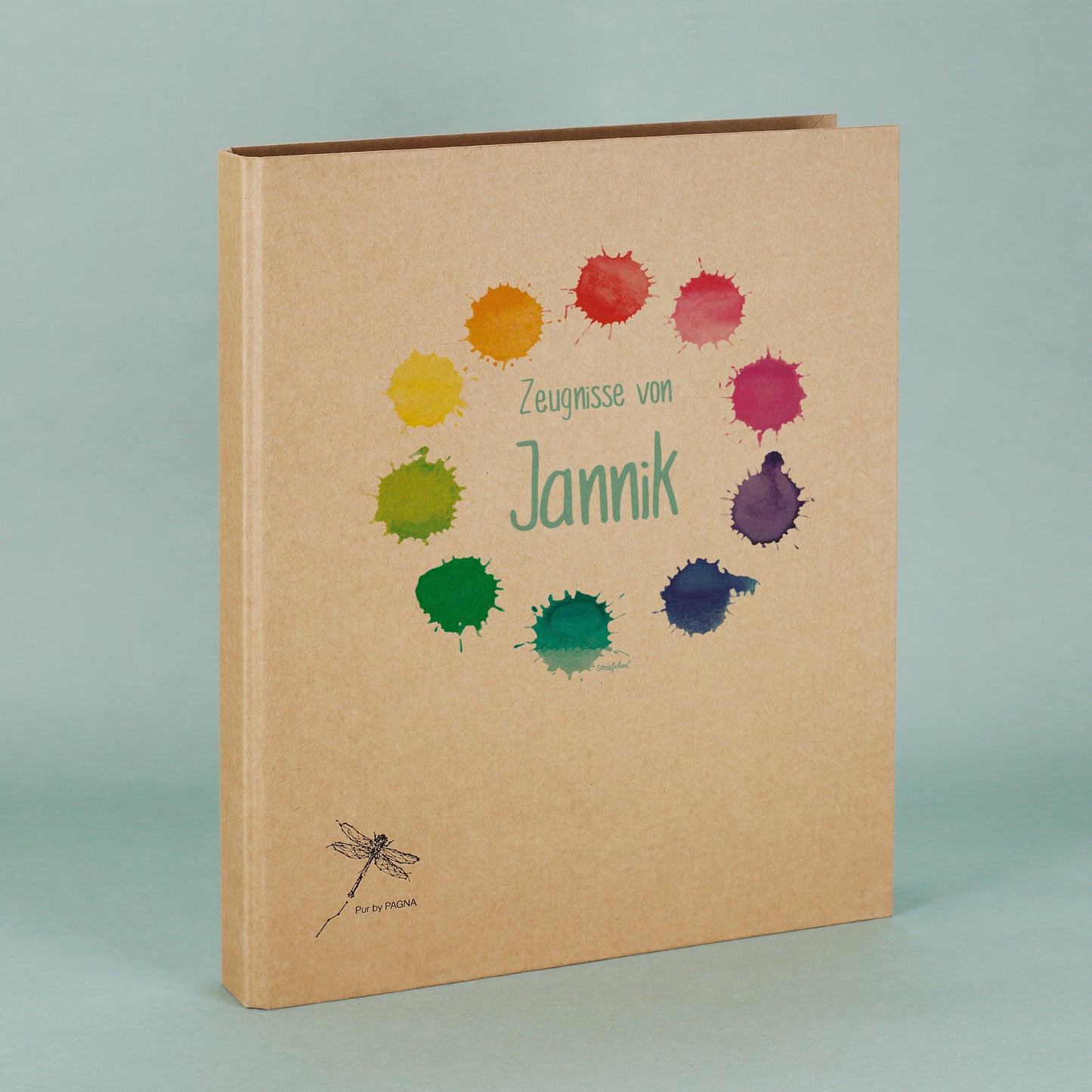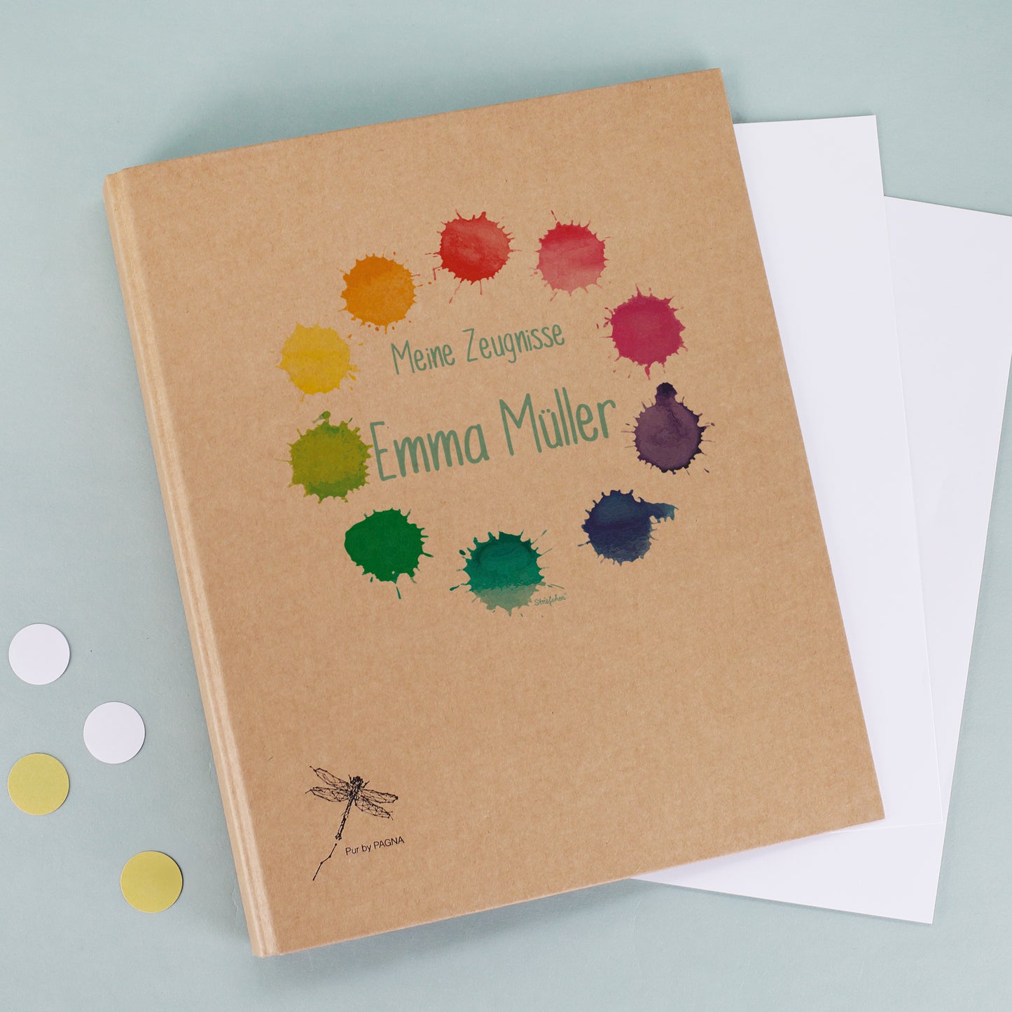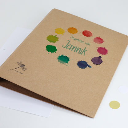 Zeugnismappe für Kinder mit Farbkleckse-Motiv und Wunschname